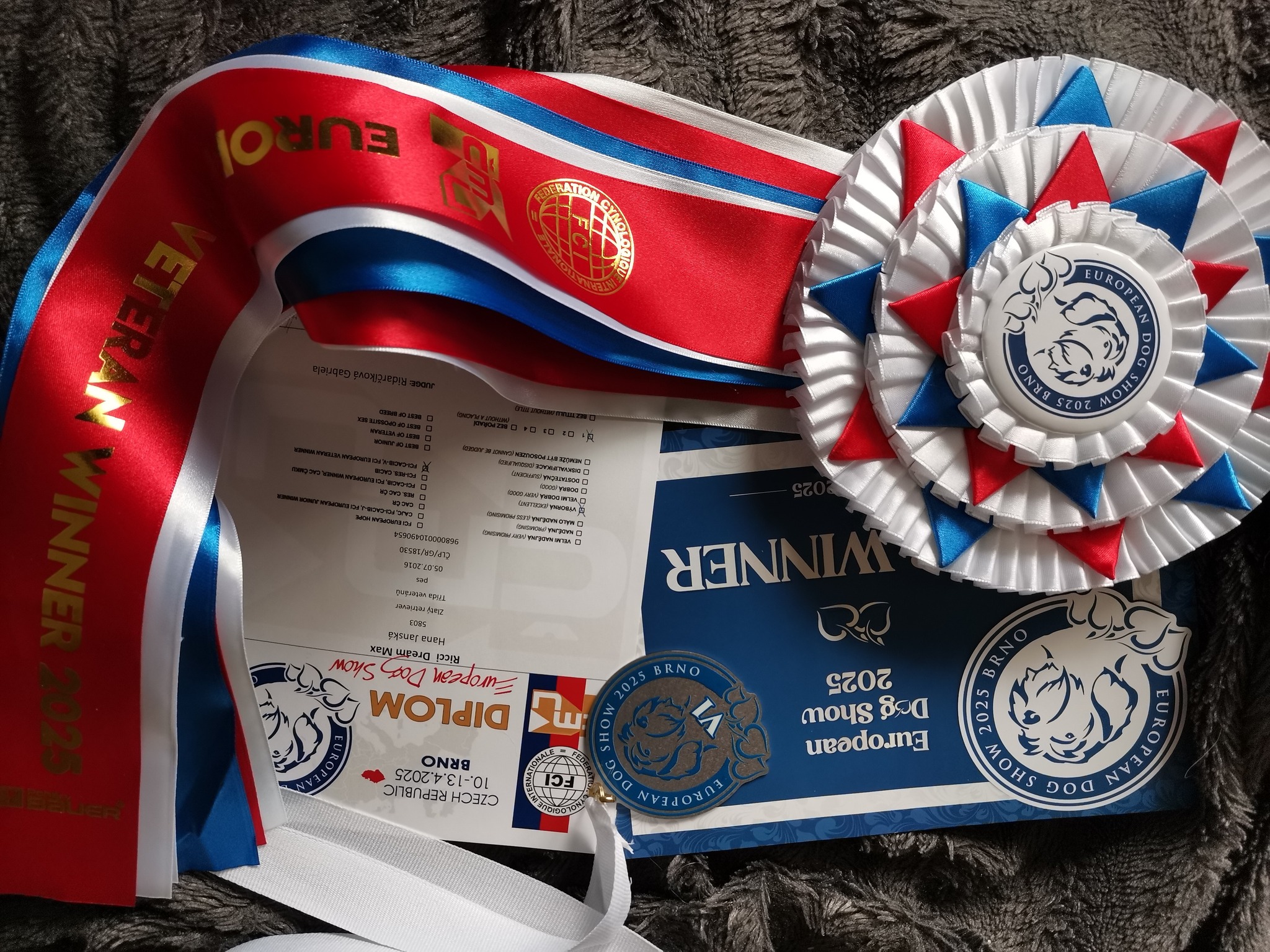 Ricci tř. veteránů V1, european veteran winner, Dexter tř. pracovní VD. Dexík pod vedením